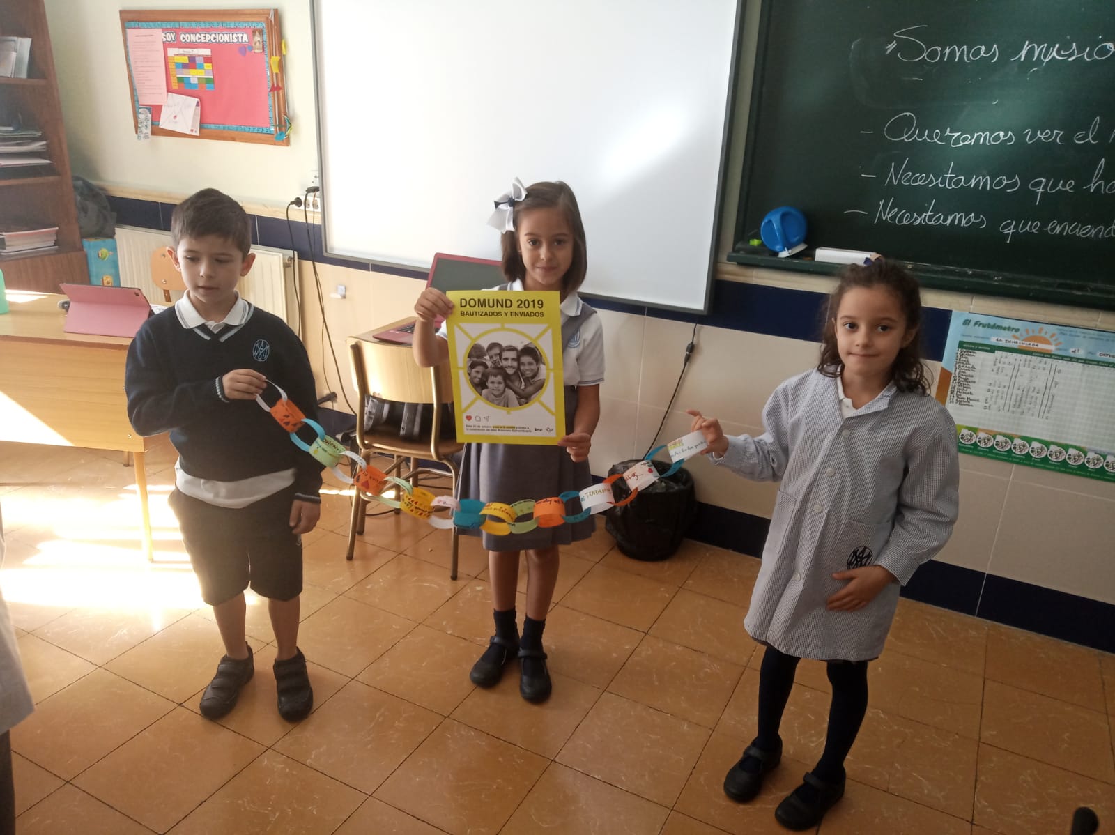 Todos los alumnos han trabajado dicho lema durante las tutorías, donde una bonita canción de Nico Montero nos ponía en misión y un rap de Grilex nos invitaba a unirnos a una cadena de bondades para que este mundo sea un lugar mejor donde todos podamos compartir con los demás nuestro corazón misionero y solidario.